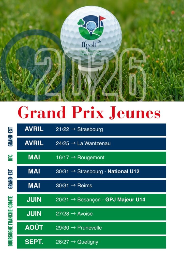 Les Grands Prix Jeunes sont organisés par la Ligue en collaboration avec le club recevant l’épreuve. Les inscriptions se font directement auprès du club. Nous vous souhaitons une belle saison golfique !